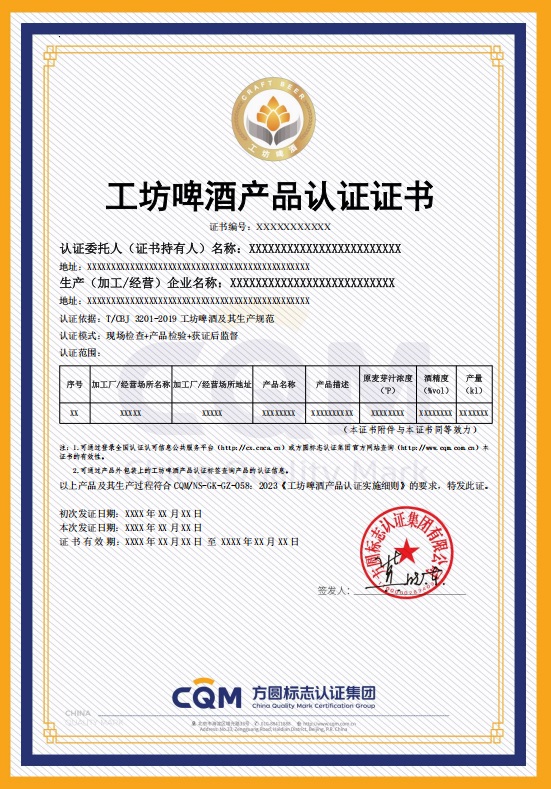 工坊啤酒產品認證