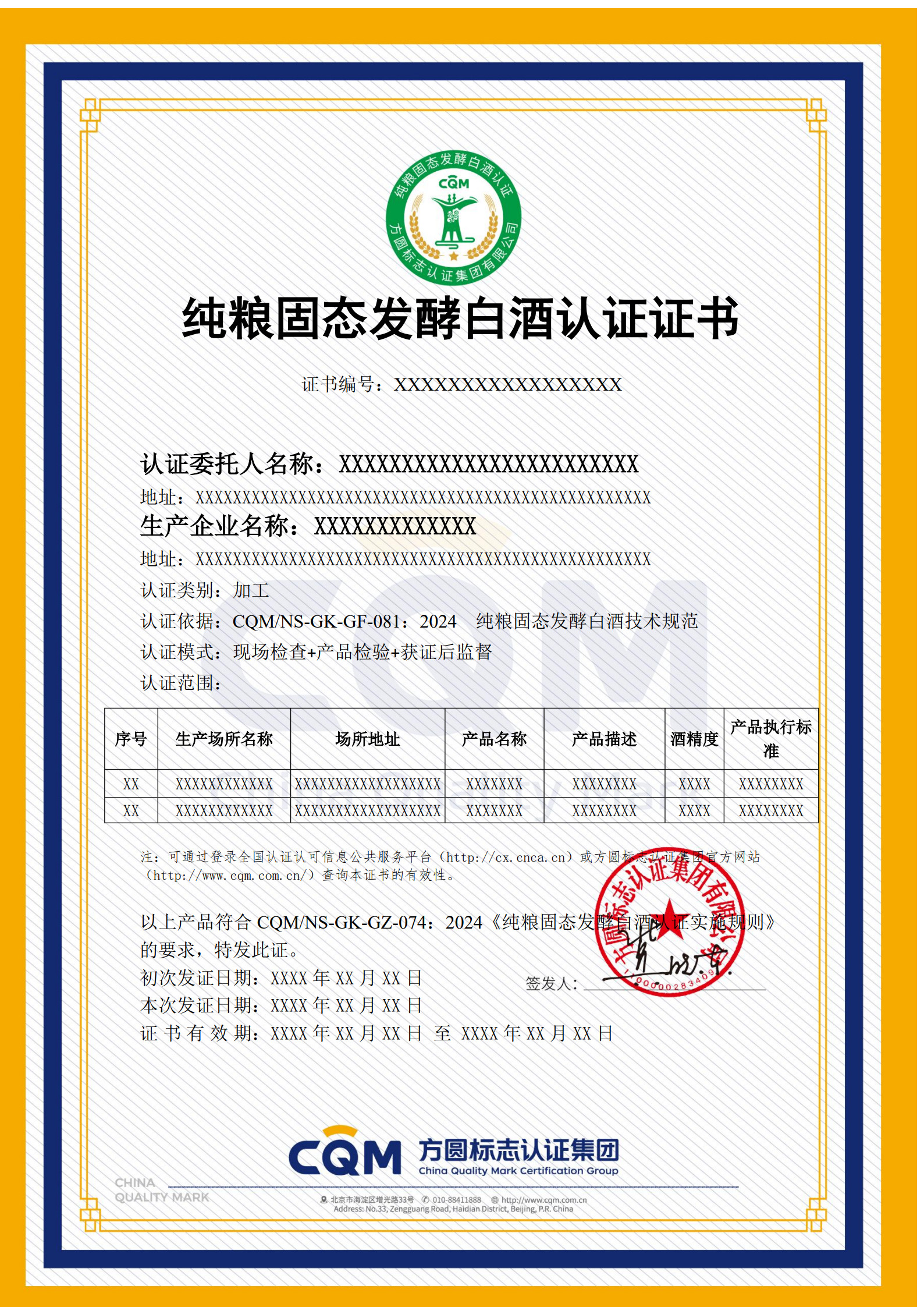 CQM/NS-GK-GZ-074:2024 純糧固態發酵白酒認證實施規則