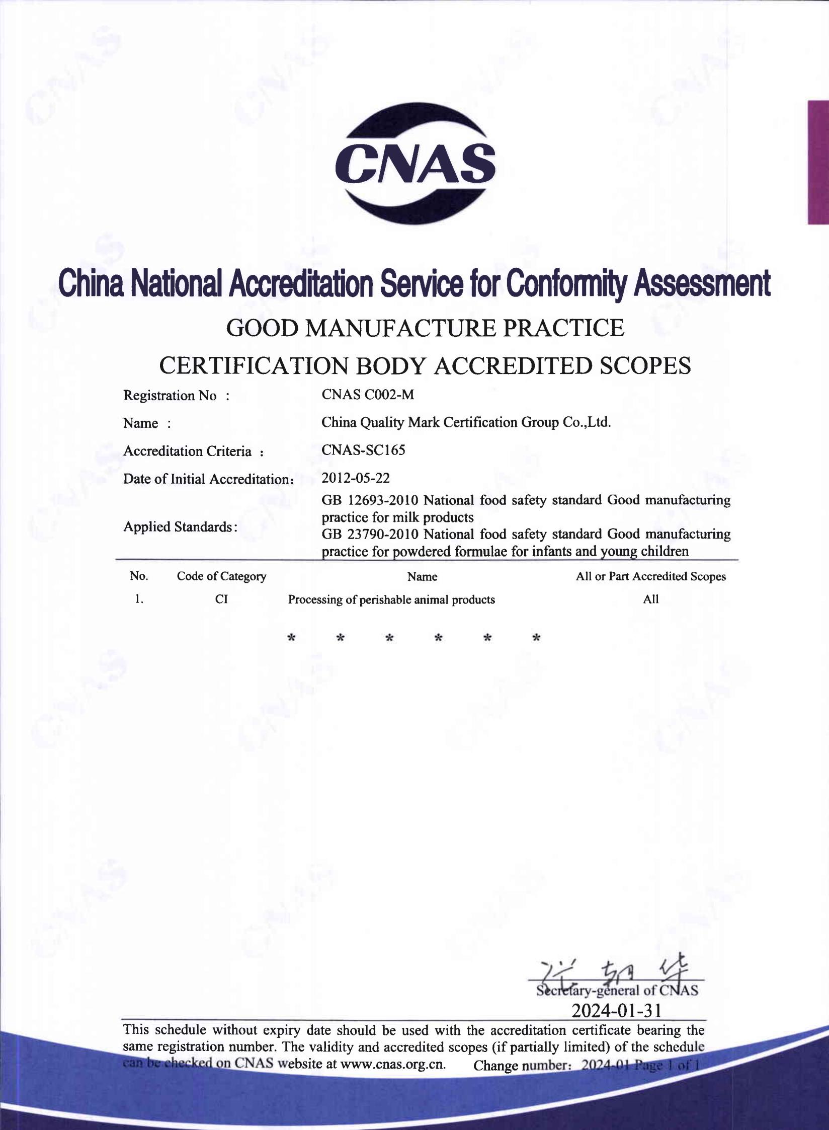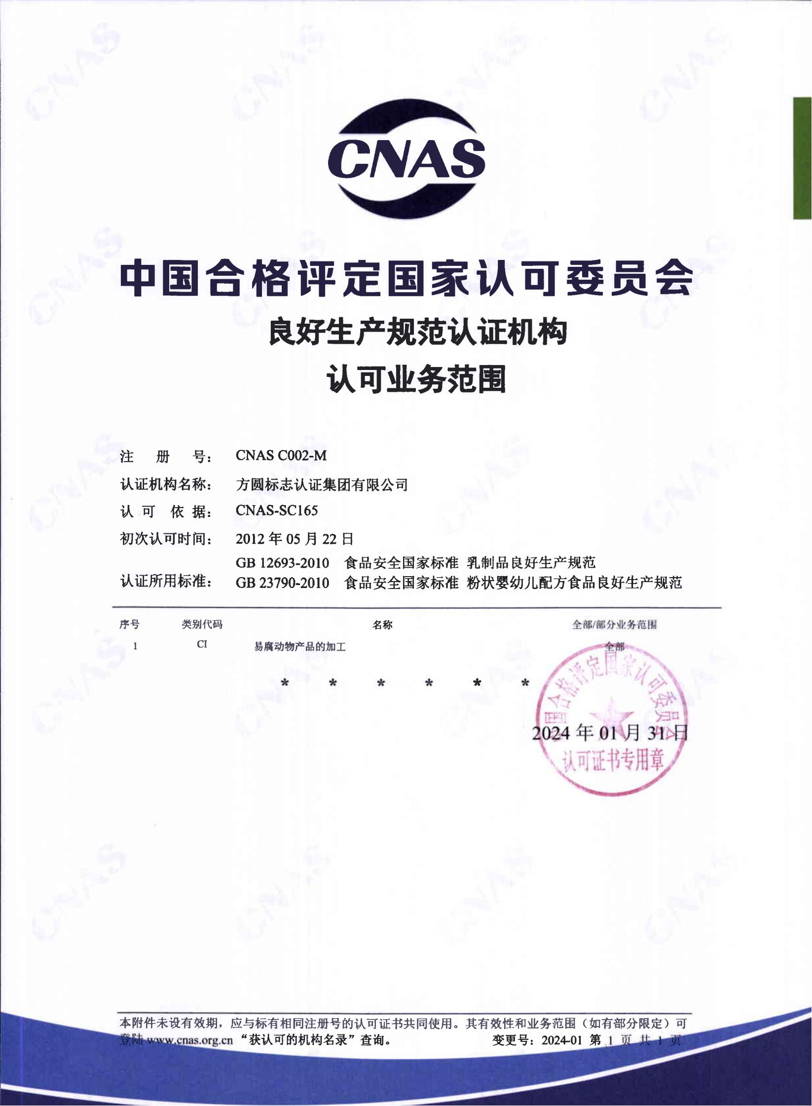 良好生產(chǎn)規(guī)范認(rèn)可證書