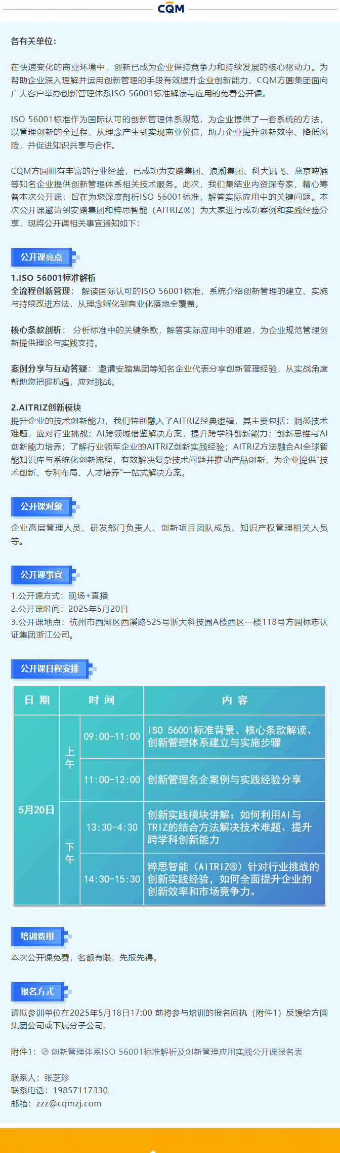 關于舉辦創新管理體系ISO56001標準解析及創新管理應用實踐免費公開課的通知