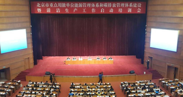 2014年10月24日北京市召開重點用能單位能源管理體系和碳排放管理體系建設暨清潔生產工作啟動培訓會,中央單位、市級部門、各區縣、在京萬家企業、市級考核重點用能單位以及清潔生產審核實施單位、相關技術服務機構等共計1000余人參會。