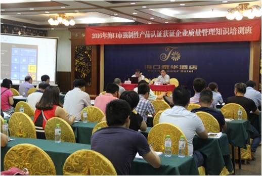 ?谫|量技術監督局大力開展服務企業、服務地方經濟發展活動。日前,方圓海南公司受海口市質監局委托承辦海口市工業產品生產許可證獲證企業質量管理知識培訓班及強制性產品認證獲證企業質量管理知識培訓班。