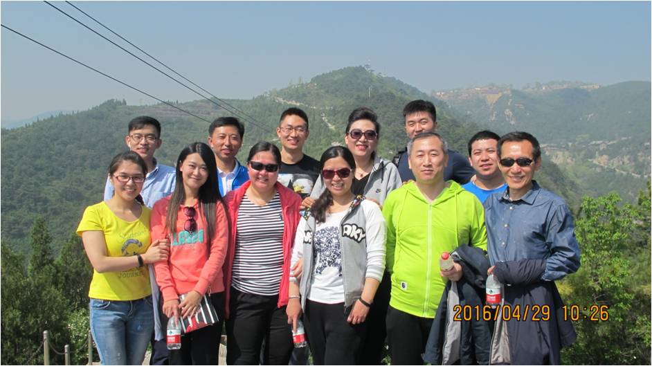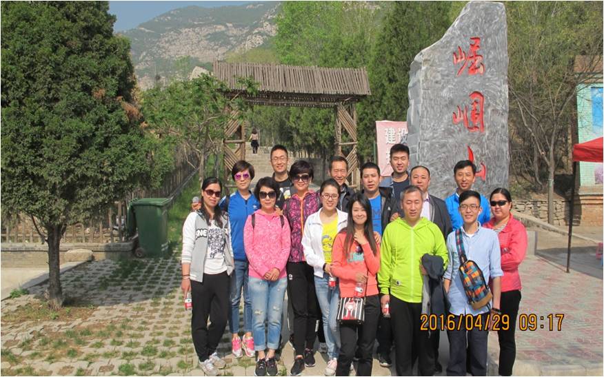 公司全體員工乘大巴抵達太原崛圍山腳做準備活動