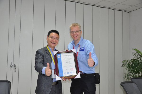 巴斯夫總經(jīng)理Marko對此次合作表示非常滿意。同時強(qiáng)調(diào)取得認(rèn)證證書只是一個開端,今后巴斯夫?qū)⒃诠ぷ髦姓嬲\(yùn)用QMS、EMS優(yōu)化管理,并不斷完善和改進(jìn),希望雙方加強(qiáng)配合,共同進(jìn)步。