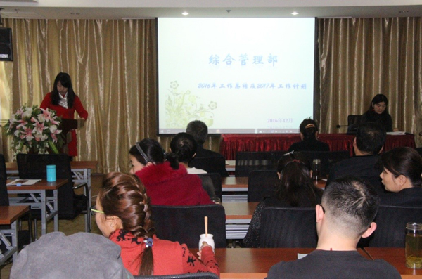 會議首先由各部門部長對2016年度本部門工作進行述職,內容包括:各部門2016年度全年已完成的重點工作、亮點工作,存在的不足、問題和建議以及2017年總體工作追趕超越計劃,各分管領導分別對所負責的部門匯報進行了點評。