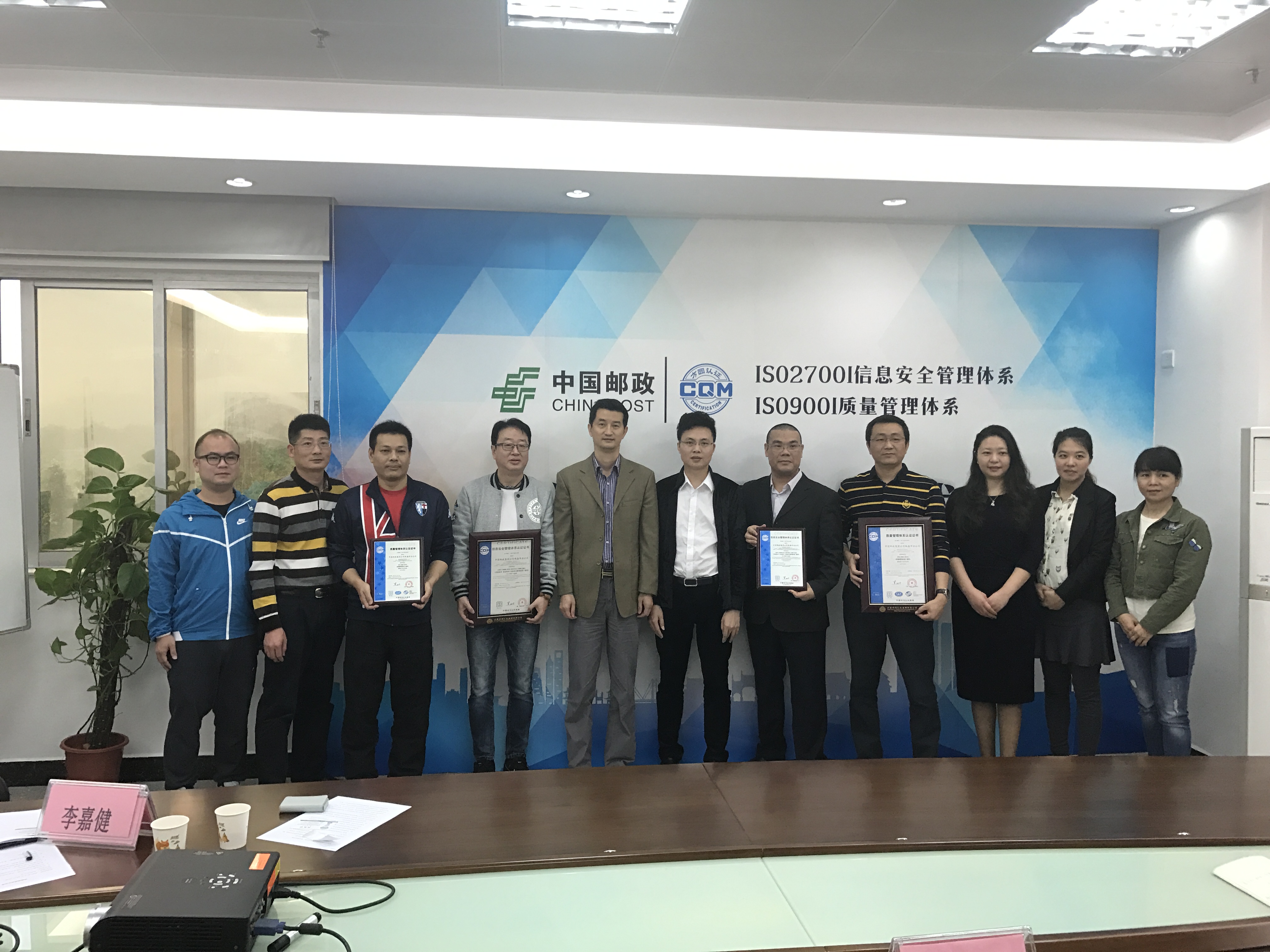 方圓廣東公司頒發首張郵政系統信息安全管理體系認證證書