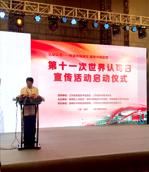 今年“世界認(rèn)可日”國內(nèi)主題是“認(rèn)證認(rèn)可——傳遞市場(chǎng)信任,服務(wù)社會(huì)發(fā)展”。啟動(dòng)儀式上,江蘇省質(zhì)監(jiān)局馮新南副局長(zhǎng)介紹了“世界認(rèn)可日”的由來以及認(rèn)證認(rèn)可工作基本內(nèi)容,對(duì)江蘇認(rèn)證認(rèn)可工作所取得的成績(jī)做了簡(jiǎn)單介紹;南京市局現(xiàn)場(chǎng)發(fā)布了南京市檢驗(yàn)檢測(cè)與質(zhì)量發(fā)展的報(bào)告。