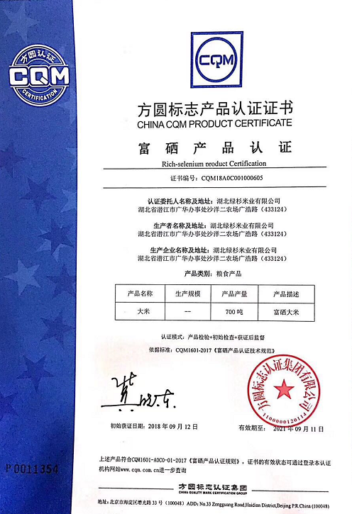 獲證企業湖北綠杉米業有限公司隸屬于沙洋監獄局湖北沙洋廣華農工貿有限公司,種植基地位于“魚米之鄉”富硒聚集地江漢平原腹地,是方圓集團的優質客戶,通過了方圓質量、環境、職業健康安全管理體系認證,富硒大米的原材料水稻也通過了方圓良好農業規范一級認證。