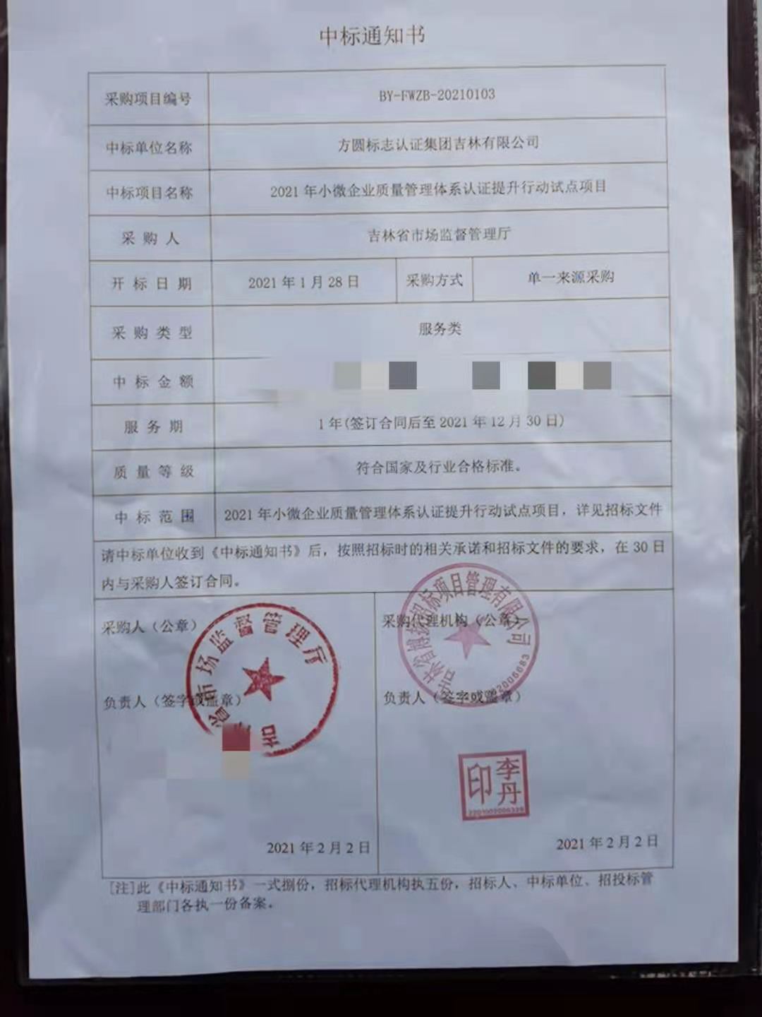 方圓吉林公司成功中標(biāo)吉林省市場(chǎng)監(jiān)管廳2021年度吉林省小微企業(yè)質(zhì)量管理體系認(rèn)證提升行動(dòng)試點(diǎn)服務(wù)項(xiàng)目