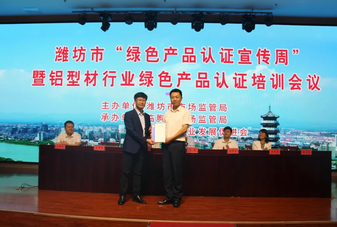 方圓山東公司頒發全省首張建筑鋁型材綠色建材產品認證證書