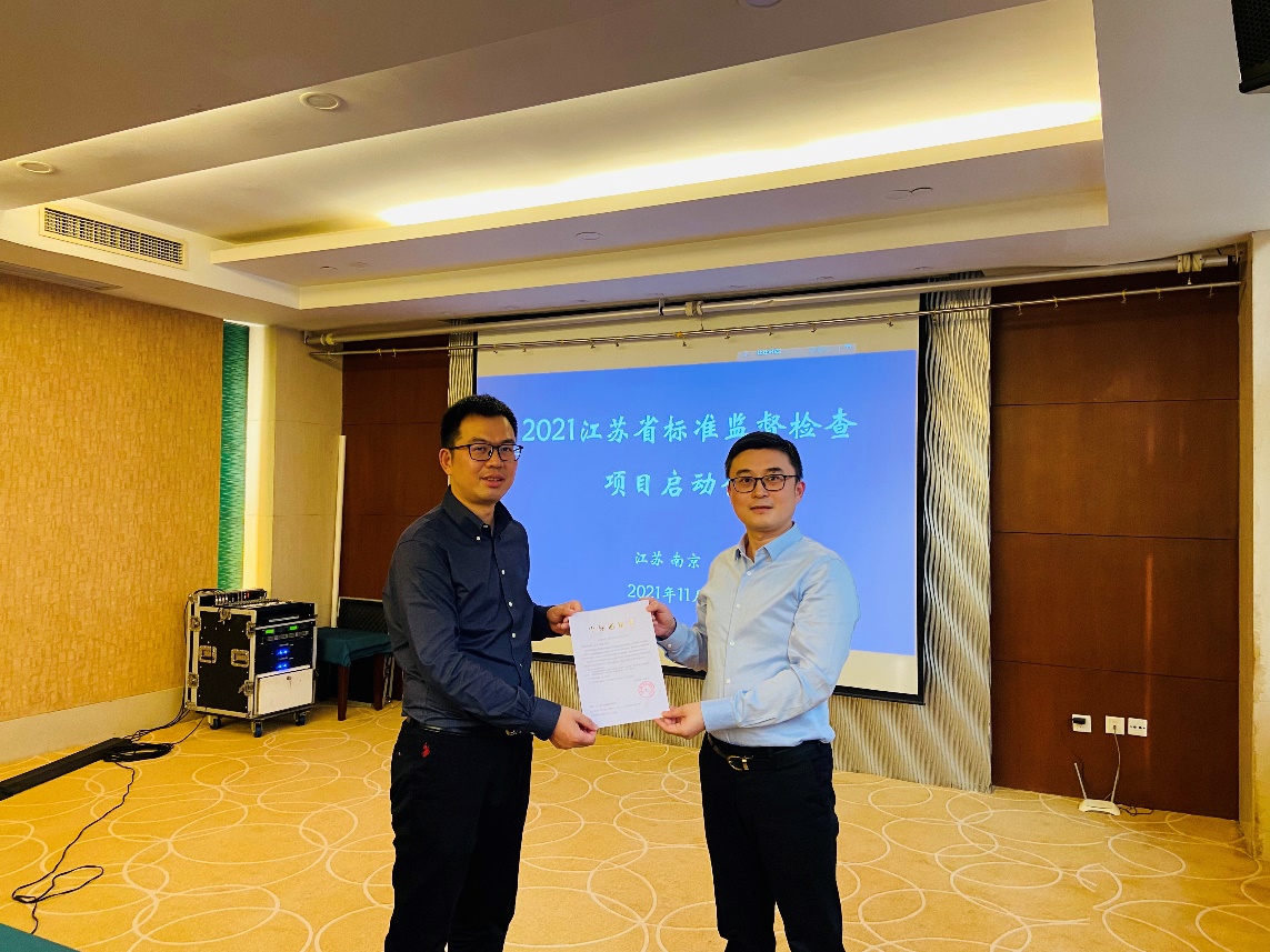 2021年11月3日,方圓規劃研究(江蘇)有限公司參加了江蘇省市場監督管理局標準化處組織召開的2021年江蘇省企業產品標準、團體標準“雙隨機、一公開”省級監督抽查工作啟動會,并領取中標通知書。