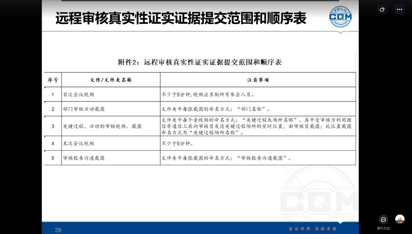 本次培訓(xùn),由審核管理與客服部重點(diǎn)講解了遠(yuǎn)程審核操作要求、審核計(jì)劃及審核報(bào)告編制要求,質(zhì)量技術(shù)部重點(diǎn)對(duì)總部專項(xiàng)檢查內(nèi)容及問題進(jìn)行匯總,并對(duì)資料審查過程發(fā)現(xiàn)的問題案例進(jìn)行了通報(bào),明確了遠(yuǎn)程審核視頻資料的上報(bào)要求。通過培訓(xùn),提高了審核員對(duì)遠(yuǎn)程審核工作的認(rèn)識(shí),統(tǒng)一操作、規(guī)范流程,為后續(xù)遠(yuǎn)程審核工作打下了堅(jiān)實(shí)的基礎(chǔ)。