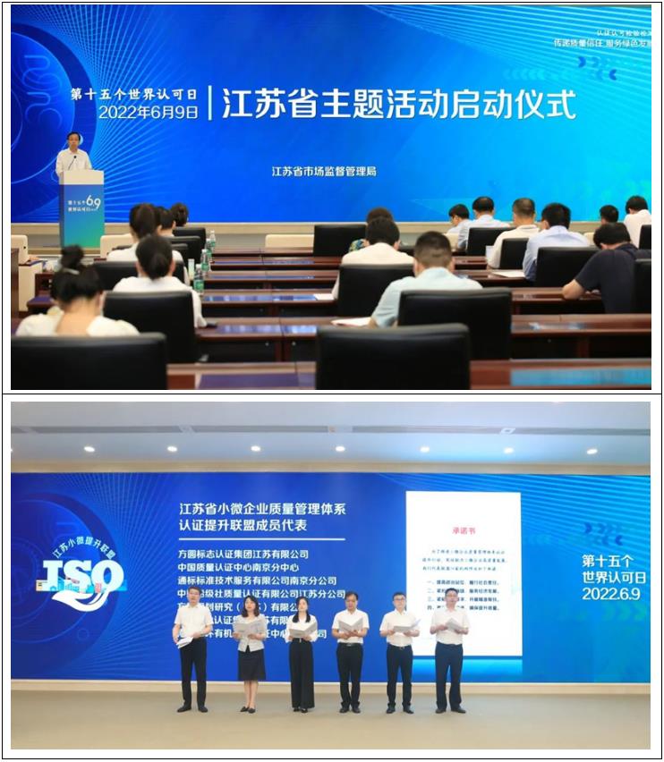 9日上午,第十五個“世界認可日”江蘇省主題活動啟動儀式在南京舉辦。啟動儀式上,方圓規劃研究(江蘇)有限公司總經理陸凱作為江蘇省小微企業質量管理體系認證提升聯盟成員代表,向社會作了服務“穩企強鏈”公開承諾。