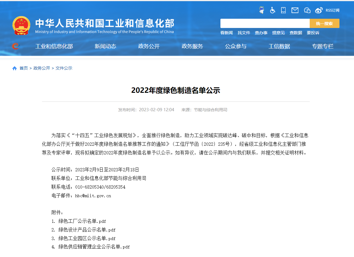 方圓山東公司客戶(hù)入圍2022年度國(guó)家級(jí)綠色工廠公示名單