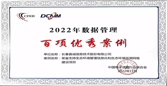 2月17日,中國電子信息行業聯合會在北京舉辦了“首屆中國數據治理年會”。方圓吉林公司服務的企業長春嘉誠信息技術股份有限公司(嘉誠信息)憑借《某省支持生態環境管理信息化和生態環境監測網絡建設項目》成功入選2022年數據管理百項優秀案例榜單。