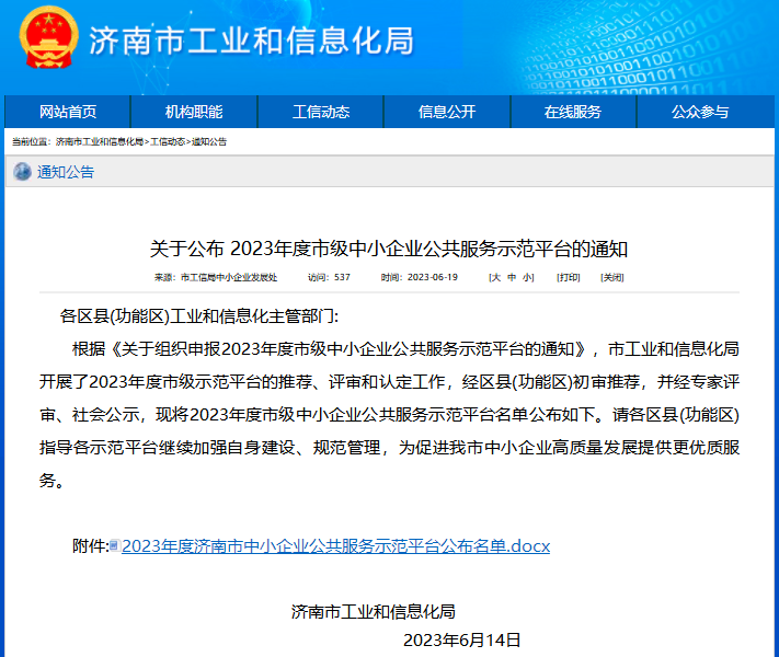 CQM方圓山東公司被認定為2023年度濟南市中小企業公共服務示范平臺